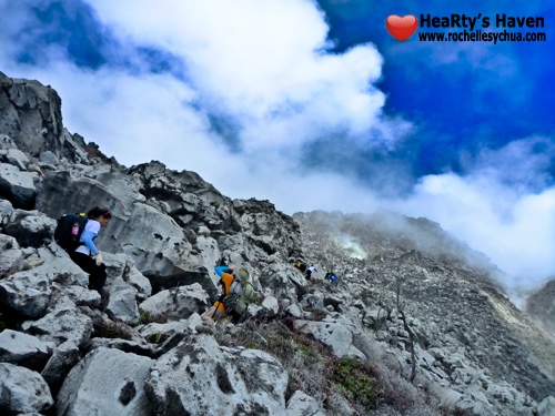 We set out past 8 AM, arriving 9AM at Tinikaran Camp 2 for a quick break. Half an hour later, the forest thinned out as we entered the boulders section of the trail. One of the first sights that will greet you here are the giant sulfur vents. We marveled at it not knowing we’ll be passing so near alongside it. At the worst of times when the wind blows from the direction of the vents, the gases sting the eyes and lungs like diluted tear gas. It is advisable to cover your nose and mouths. No need for goggles. The effects wear off immediately once fresh air blows from the other way.